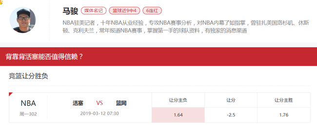 活塞近期迎来强势反弹,一波5连胜是目前仅次于火箭的连胜势头。明天虽然是背靠背,但是今天战胜公牛的比赛中并没有迎来太大挑战,几名主将的出场时间都在20多分钟。而篮网上一场2分险胜老鹰,球队在赛季末段还是显示出了一些问题。