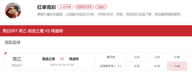 竞彩推介:主让球负 数据倾向:特温特(0)