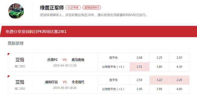 周二001,庆南FCvs鹿岛鹿角,推荐:受让一球3