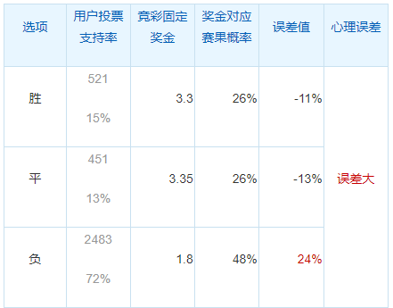 4月26日误差排行所选比赛打出低热冷门,周五019鹿特丹斯巴达2-2阿贾克斯青年队打出截稿前平局奖金3.95,对应误差-13%;周五010奥尔良0-1特鲁瓦,打出截稿前主负奖金2.6,对应误差26%。今天是4月27日星期六,竞彩足球开售赛事52场,其中胜平负单固1场。