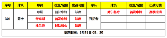 附今日伤停: