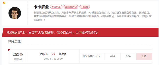 总之,从基本面来看,在巴伊亚主场8连胜的态势下,盘口却是平半降平手,走主队不败会是多数人的选择,拉主力在主队一方,对主胜打出不利,在巴伊亚并不一定要赢的情况下,还是走客队不败为宜。