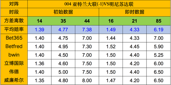 本场主胜赔后市略有抬升,目前胜平差接近,不过亚特兰大联近期2连败、目前方差的略微示弱是合理的,本场对手明尼苏达联客场战绩很一般,本场主胜仍是首选。竞彩建议单选主胜。