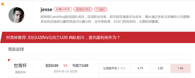 主队尼日U20新赛季世青杯2场1胜1负积3分暂列排名第2,球队近期攻防两端表现非常平庸,近十场主场4胜4平2负,其中包括上轮非青锦主场0:0战平南非U20,获主场连续3场不败战绩。不过球队在新赛季第二轮比赛0:2不敌美国U20,遭遇各项赛事的首场关利,士气有所低迷。客场乌克兰U20新赛季世青杯2场获得全胜积6分暂列排名第1,球队近期攻防两端表现相当强势,近十场客场6胜2平2负,其中包括上轮世青杯客场1:0小胜于卡塔尔U20,荣获主场3连胜,士气高涨。两队近1次交锋中主队尼日U201:0获胜本场对手,心里占据上风。本赛欧指初指给出2-3-2的数值体系,即时平赔率下降,主与客赔率下降。亚指机构开出初指主让平半超高水,初指优势明显,后市水位微降仍维持超高水,客队热度维持超低水,可见机构对主队信心不足,根据两队目前的实力与现状,特此推荐客队不败。