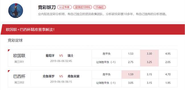 指数方面,竞彩初始给出1.53 3.30 4.95,给予了主队一定的支持,但是受注后胜指有所提升,显然瑞士队近期良好的表现,让人另眼高看,加上历史交锋中,瑞士队占据一定的优势,故本轮比赛我首选平局,次选让平。总进球为1、2。