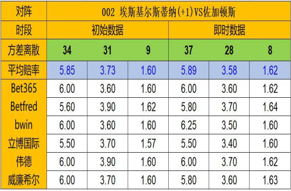 (方差的正常值一般是该项上平均赔率*10,低赔方除外。)