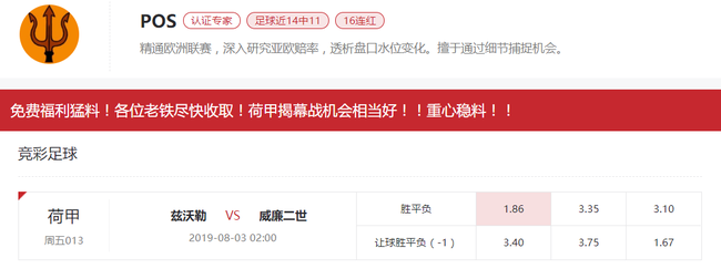 本场是新赛季荷甲揭幕战,两队交锋中威廉二世不败率相当高,上赛季威廉二世双杀兹沃勒。