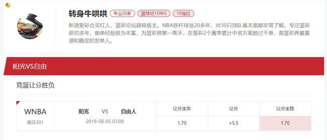 本场在客场有所懈怠也是正常现象,本场自由存在一定爆冷赢球的概率,看好她们在主场拿下太阳的盘口。