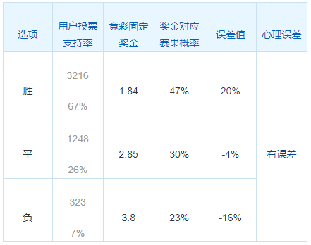 分析:希腊人竞技是塞浦路斯联赛豪门,近4个赛季联赛连冠,但是放眼欧洲仍是冠军中的鱼腩,上赛季止步资格赛第二轮,本赛季第三轮遭遇的是阿塞拜疆的卡拉巴赫,两队半斤八两棋逢对手,后者2017年曾杀入正赛阶段,并不缺乏经验,但是欧战依赖主场,客场成绩糟糕,近9个欧战客场仅有1胜,不过近4个欧冠资格赛客场都是平局,也不容易被击败,对上希腊人竞技近5个欧战主场全胜,必有一番龙争虎斗。两队近年没有交手。竞彩方面,截稿前开出胜平负游戏奖金1.84、2.85、3.8,主胜概率47%,用户支持率67%,存在20%的较大误差。