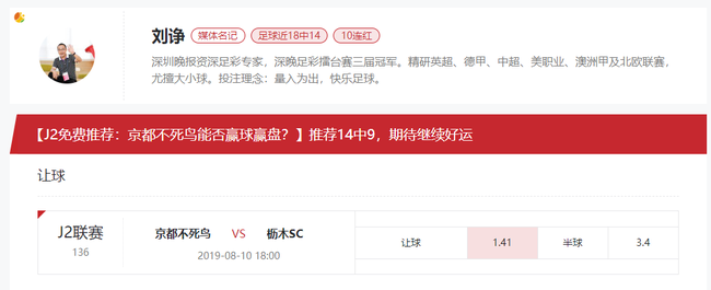 今天连续做客,面对的又是实力战意都在他们之上的京都不死鸟,想要拿分困难太大。亚洲指数开出主让一球,看好京不死鸟主场赢球赢盘。