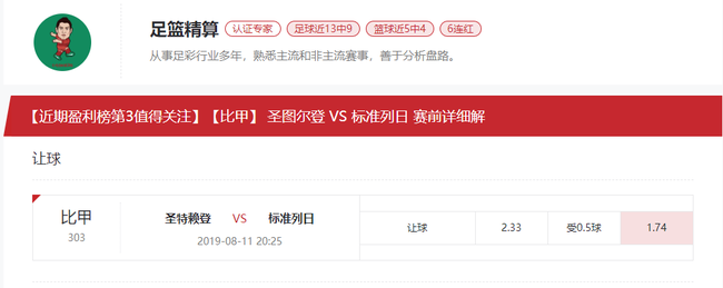 基本面分析:圣图尔登目前排名联赛第16、新赛季开局不佳、遭遇连败、且一球未进、状态比较低迷。反观客队标准列日目前两场比赛连胜积6分排名第4、新赛季开局不错、上一场联赛在主场4-0大胜威尔郡、两场比赛打进6球、且保持零封、防线稳固、状态比甲稳定、值得期待。两支球队整体实力和状态来看无疑客队更强、结合两队近期基本面以及亚洲指数和欧洲指数综合分析来看、机构对于客队取胜赢得数据的信心较足足、走势也是指向客队、本场比赛个人看好客队标准列日取胜赢得数据!