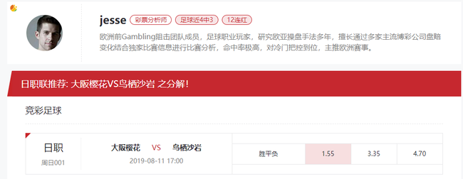 主队大阪樱花近期攻防两端表现亮眼,近十场主场6胜4平0负,包括上轮日职联主场0:0战平仙台维加,士气大振,不过上轮日职联客场0:3负于领头羊东京Fc,终止各种赛事7连不败。客队鸟栖沙岩近期攻防两端表现相当堪忧,近十场客场1胜2平7负,包括上轮客场1:2不敌鹿岛鹿角,遭遇客场钴连续4场不胜之势,士气稍显低迷。两队近4次交锋主队大阪樱花获全胜,心中占据优势。本赛欧指即时主胜赔率低下,这样对主队打出有利。亚指初指给出主让半一中低水,初指优势明显,后市水位降低,客队热度上升,可见机构对主队信心满满,综合全部的信息,本场推荐主队大阪樱花能顺利晋级。
