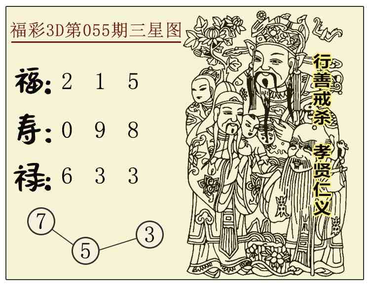 25055期:福彩3D【三星图】字谜推荐 开368 胆码中3、6、8
