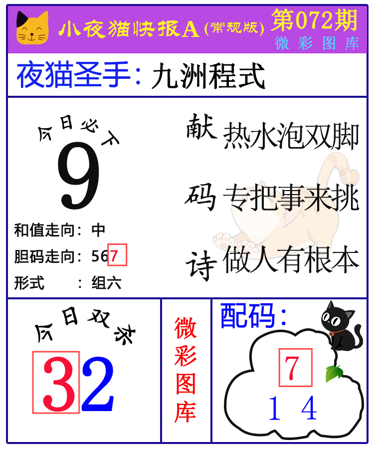 25072期:福彩3D【小野猫快报】精选版图库 开272 胆码走向红7、配码红7