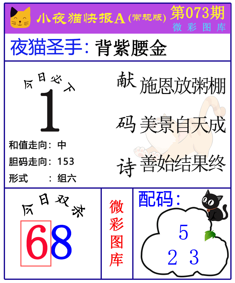 25068期:福彩3D【小野猫快报】精选版图库 开555 双杀准