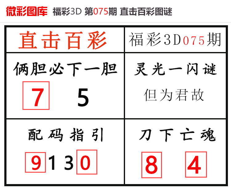 25075期:福彩3D【直击百彩】微彩图谜 开709 胆码红7、配码红9、0、杀码准