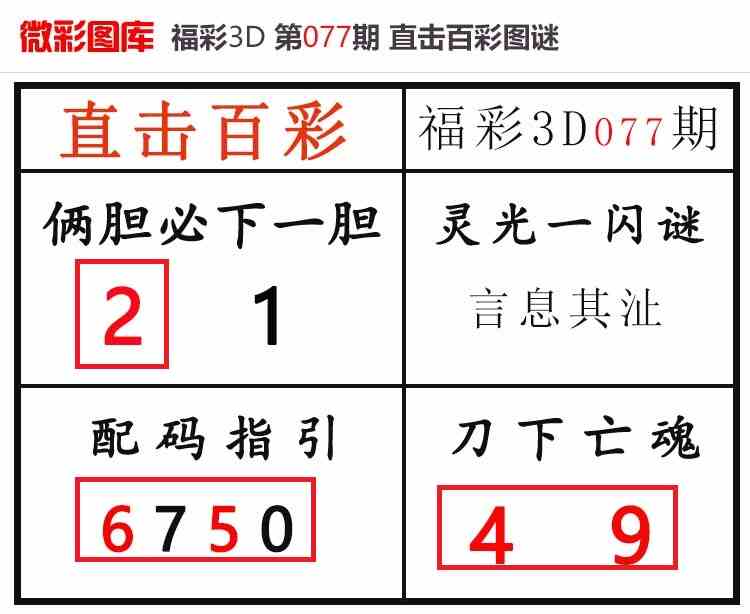 25080期:福彩3D【直击百彩】微彩图谜 杀码6连准 上期胆码红6