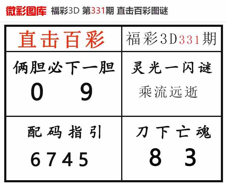 下一篇:25331期:福彩3D【小野猫快报】精选版图库 上期配码红6
