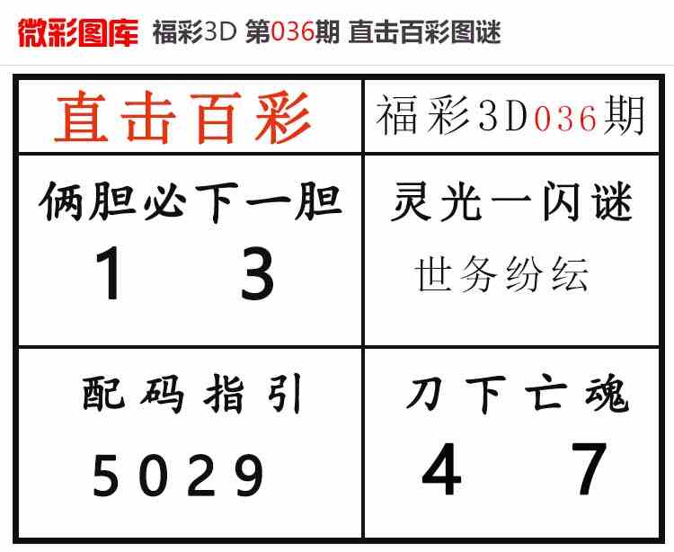 下一篇:26036期:福彩3D【小野猫快报】精选版图库 上期配码红1