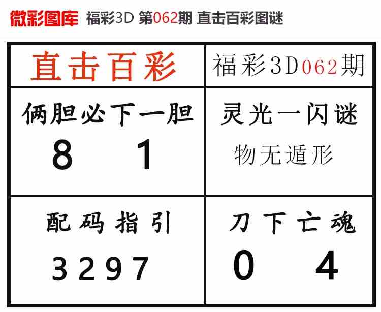 上一篇:26062期:福彩3D【小野猫快报】精选版图库 上期配码红4