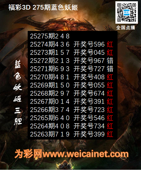 上一篇:福彩3D25274期胆码 蓝电耗子三胆图