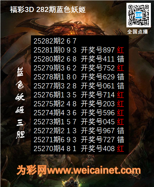 上一篇:福彩3D25281期胆码 蓝电耗子三胆图