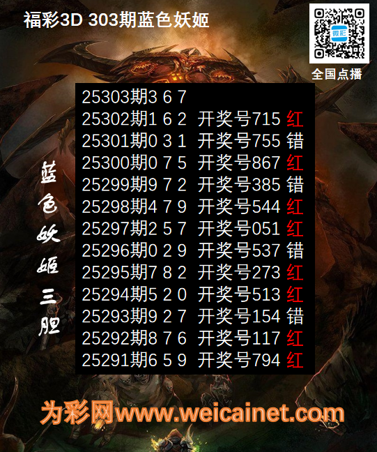 上一篇:福彩3D25302期胆码 蓝电耗子三胆图