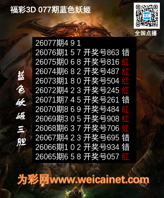 下一篇:福彩3D26077期胆码 吸血鬼双胆图