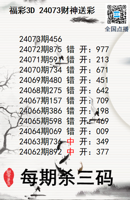 上一篇:福彩3D24073期分析师小鲨鱼杀号图精选