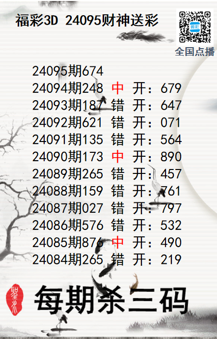 上一篇:福彩3D24095期分析师小鲨鱼杀号图精选