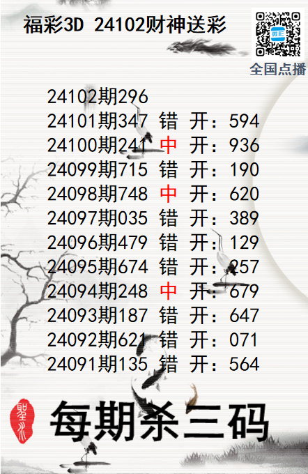 上一篇:福彩3D24102期分析师小鲨鱼杀号图精选