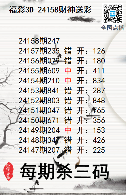 上一篇:福彩3D24158期分析师小鲨鱼杀号图精选