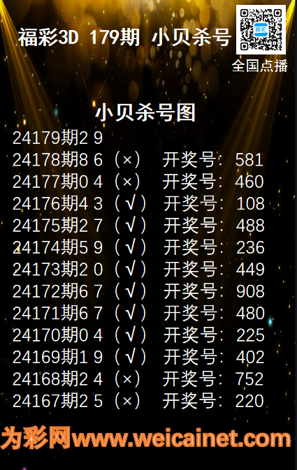下一篇:福彩3D24179期分析师小鲨鱼杀号图精选