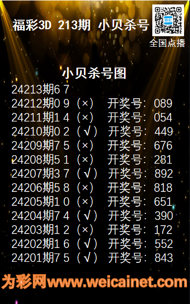 下一篇:福彩3D24213期分析师小鲨鱼杀号图精选