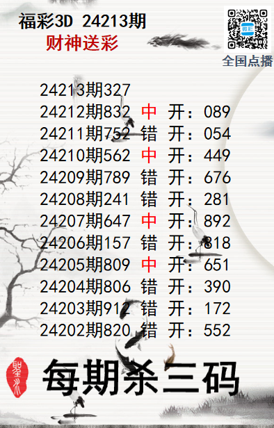 上一篇:福彩3D24213期分析师小鲨鱼杀号图精选