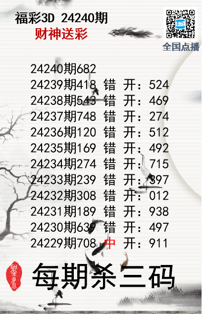 上一篇:福彩3D24240期分析师小鲨鱼杀号图精选