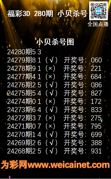 下一篇:福彩3D24280期分析师小鲨鱼杀号图精选