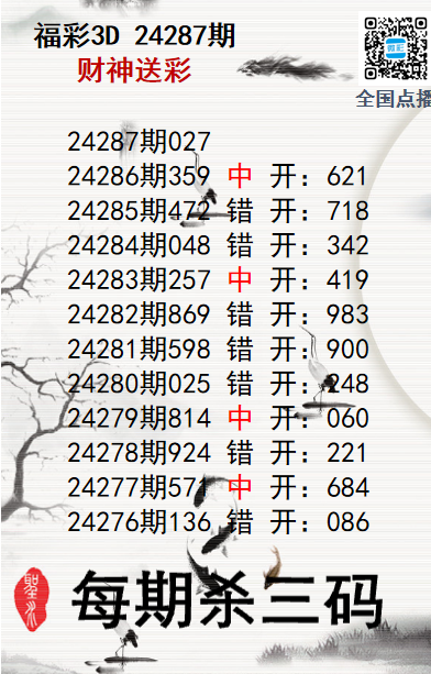 上一篇:福彩3D24287期分析师小鲨鱼杀号图精选