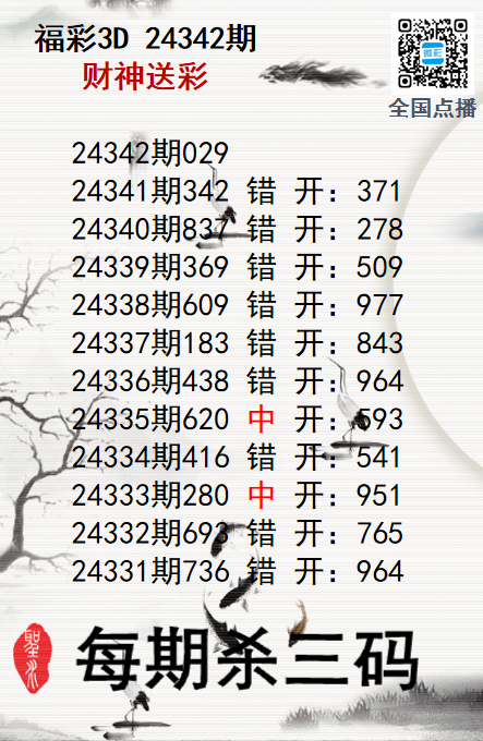 上一篇:福彩3D24342期分析师小鲨鱼杀号图精选