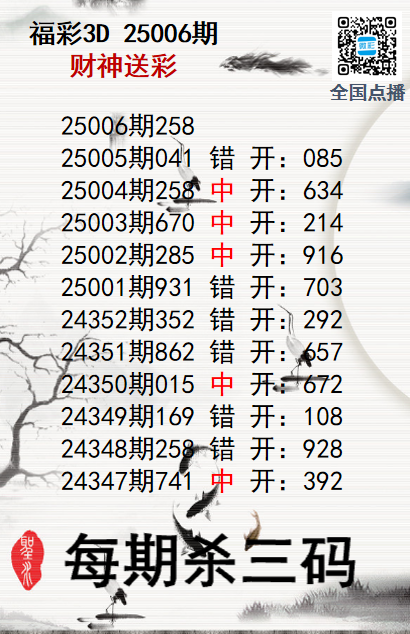 上一篇:福彩3D25006期分析师小鲨鱼杀号图精选