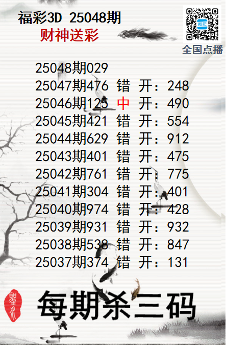 上一篇:福彩3D25048期分析师小鲨鱼杀号图精选