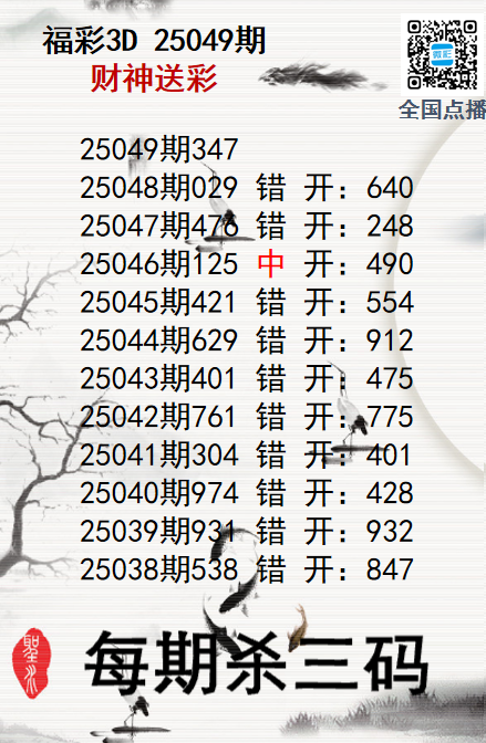 上一篇:福彩3D25049期分析师小鲨鱼杀号图精选