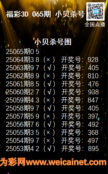 上一篇:福彩3D25064期财神送彩杀三码
