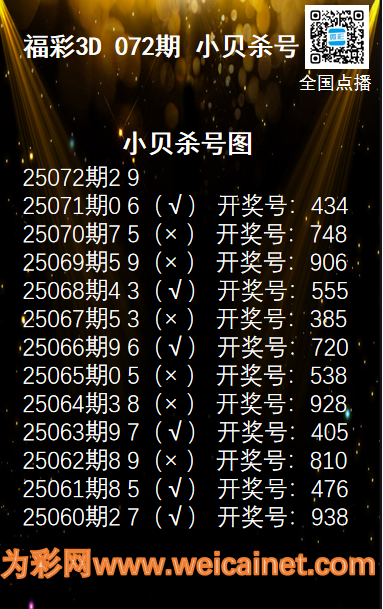 下一篇:福彩3D25072期分析师小鲨鱼杀号图精选