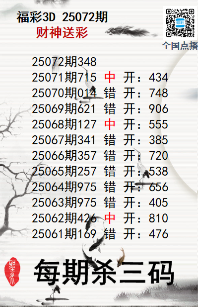 上一篇:福彩3D25072期分析师小鲨鱼杀号图精选