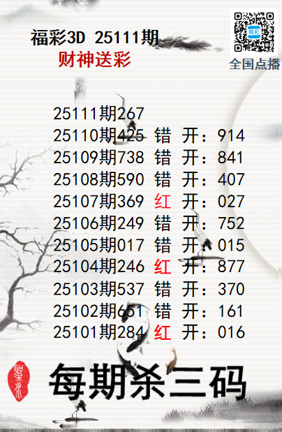 上一篇:福彩3D25111期分析师小鲨鱼杀号图精选