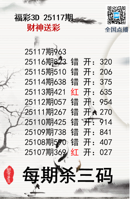 上一篇:福彩3D25117期分析师小鲨鱼杀号图精选