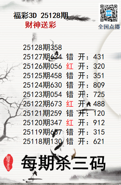上一篇:福彩3D25128期分析师小鲨鱼杀号图精选