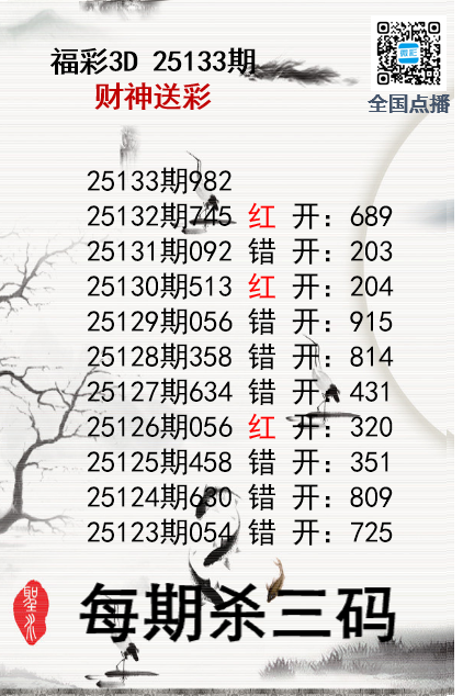 上一篇:福彩3D25133期分析师小鲨鱼杀号图精选