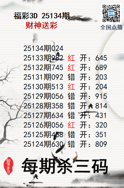 上一篇:福彩3D25134期分析师小鲨鱼杀号图精选